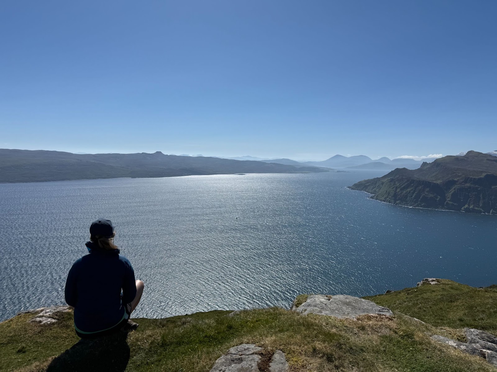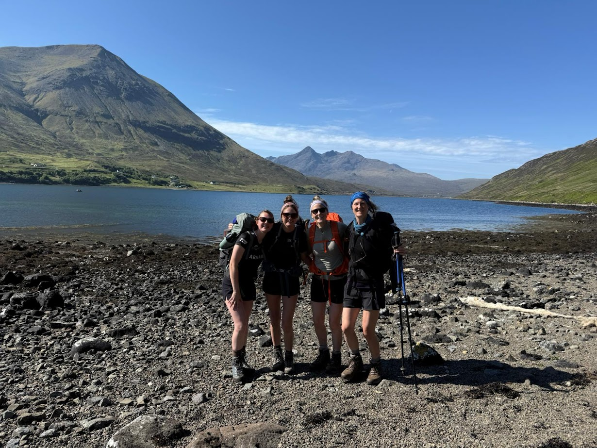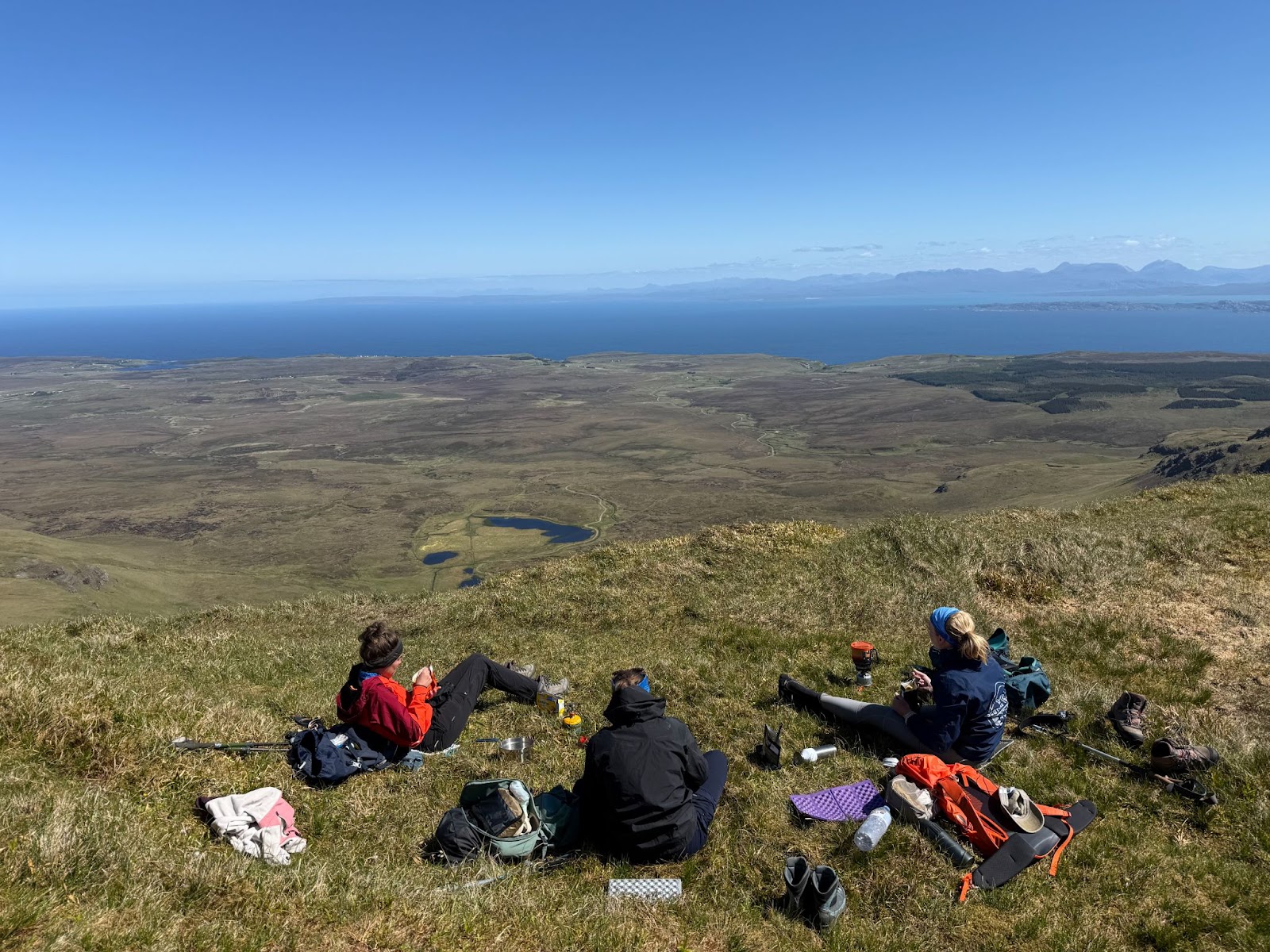 Schotland is dan wel relatief dichtbij, toch is de reis vrij lang ;). We vliegen van Schiphol naar Edinburgh, waar de bus vertrekt naar het eiland. Door vertragingen als wegopbrekingen komen we ‘s avonds laat om 22u aan op de campsite in Elgol. Hier worden we verwelkomd door de gidsen, die heel lief onze tenten al hadden opgezet, en een oneindige zwerm midges. We rennen naar binnen voor een korte briefing, ontvangen onze spullen (tent ed) en hierna komt direct het midges pakket goed van pas. Gaat dit de hele tocht zo zijn?? (Gelukkig niet haha, dit was de ergste locatie, hierna viel het alles mee – red.)