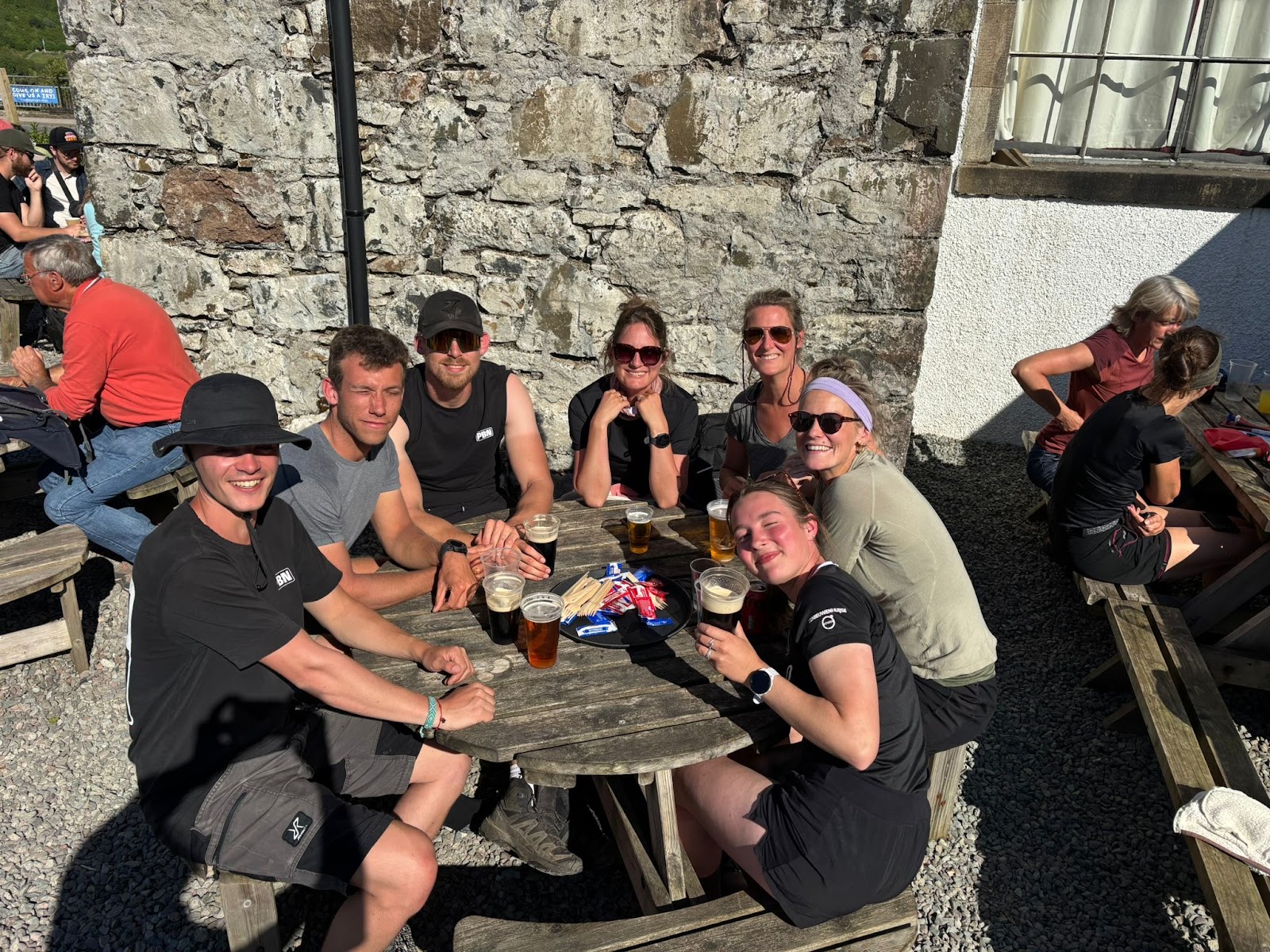 Op het eindpunt worden we opgehaald door onze driver Eddie die ons weer terugbrengt bij de camping. Hierna besluiten we met hem mee te rijden langs de supermarkt voor wat vers fruit, biertjes chips en een fles whiskey voor thuis (lang leve het bagagetransport 😉 en we houden een gezellig borreltje op de camping. Ook kopen veel iets uit de ‘honesty box’, gevuld met dagvers gebak door de eigenaresse waar je een paar ponden voor achterlaat (achteraf gezien was dit het enige waar je losse ponden voor nodig had deze hele reis). Vroege briefing vandaag, morgen een lange dag!