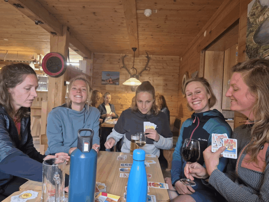 Heel bijzonder ook hoe een groep van totaal verschillende vrouwen zo snel 1 hechte groep kan vormen. Doordat je de tijd hebt leer je elkaar snel kennen en er zijn toch een paar gemene delers. Zo houdt iedereen van de natuur, lekker actief bezig zijn, zichzelf een beetje uit te dagen en in ons geval ook van spelletjes. Iemand zei: ‘ik had verwacht dat ik me ’s avonds na zo’n hele dag met een groep ook wel graag even terug zou willen trekken met een boek, maar heb deze de hele vakantie niet uit m’n tas gehaald. Ik vond het zo gezellig!’