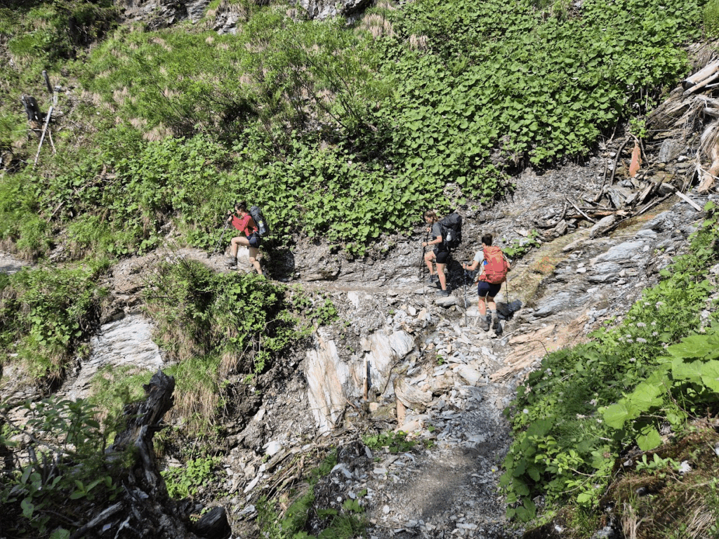 Wat ons verrast heeft deze tocht is de veelzijdigheid van terrein en omgeving, er kwam van alles voorbij. Na elke bocht was het uitzicht weer anders, van alpenweiden tot grillige bergkammen. De paden verschilden van vlak en breed tot smal langs een bergwand. Ook viel het ons mee hoe weinig liften en autowegen we hebben gezien. Veel hutten voelden echt weg van de bewoonde wereld en ook onderweg kwamen we heel weinig andere mensen tegen. We waanden ons echt in onze veilige, rustige, gezellige bergbubbel en kwamen los van ons leven thuis. Eenmaal op de terugweg kwam de agenda weer om de hoek, wat gaan we vanavond of morgen doen, wat moet er nog gebeuren? Maar tot die tijd? We waren er even echt uit 🙂